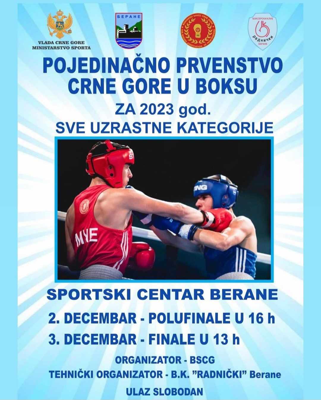 Pojedinačno prvenstvo Crne Gore, u boksu za 2023. godinu, za sve uzrasne kategorije, biće održano ovog vikenda u beranskoj Hali sportova.