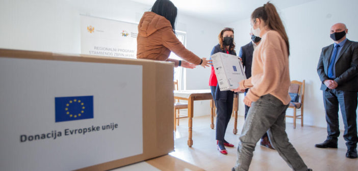 Prilikom posjete opštinama Rožaje i Berane, šefica Delegacije EU donirala je 30 računara đacima i studentima iz socijalno ugroženih porodica, kao i korisnicima Regionalnog stambenog projekta.