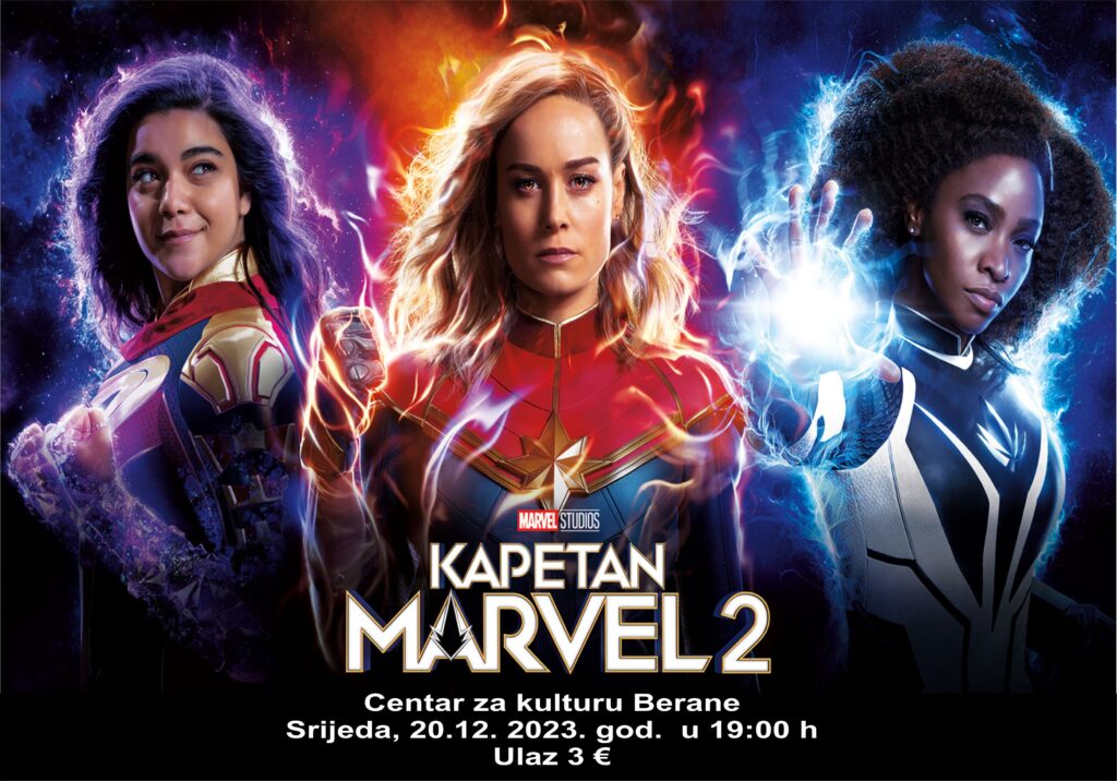 Film „Kapetan Marvel 2“, baziran na heroini Marvelovih stripova Kerol Denvers, biće prikazan u bioskopu Centra za kulturu, u srijedu, 20.decembra, sa početkom u 19 časova.
