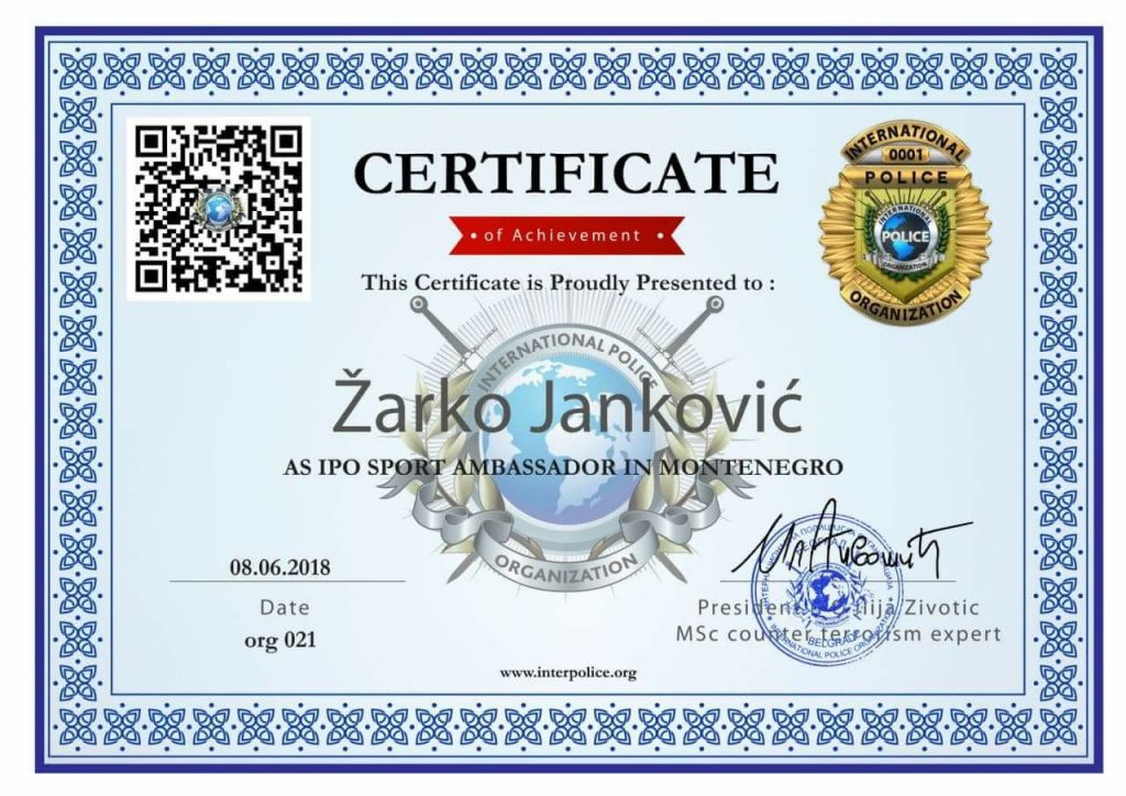 “Ovo priznanje od strane IPO-a je za mene velika čast. To što sam izabran za ambasadora sporta u Crnoj Gori od strane IPO-a je još jedan dokaz pravog i iskrenog rada i ulaganja na promociji borilačkih vjestina i sporta uopšte u Crnoj Gori”, kazao je Janković.