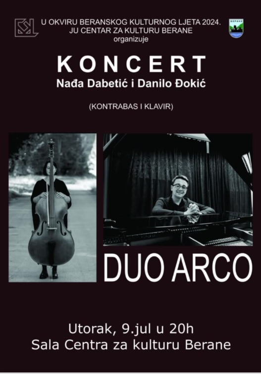 U okviru „Beranskog kulturnog ljeta 2024“, u organizaciji JU Centar za kulturu Berane, koncert dua “Arco“ na kome će se predstaviti umjetnici Nađa Dabetić (kontrabas) i Danilo Đokić (klavir) zakazan je za sjutra, u 20 časova, u beranskom Centru za kulturu.