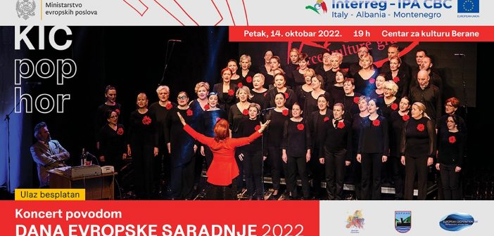 Поводом Дана европске сарадње, Министарство европских послова у сарадњи са Општином Беране, у петак, 14. октобра, у сали Центра за културу, са почетком у 19 часова, организује концерт КИЦ поп хора.
