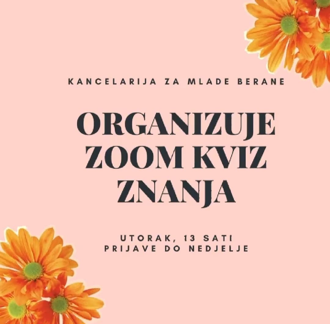Kancelarija za mlade (KZM) Berane, u utorak, 15. septembra, sa početkom u 13 časova, organizuje ZOOM kviz opšteg znanja, kao svojevrsnu pripremu za početak nove školske/studijske godine.