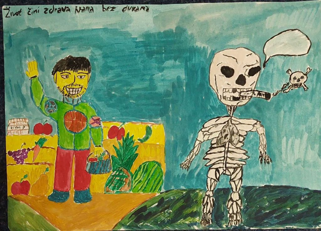 Učenici osmog razreda Osnovne škole “Vuk Karadžić” iz Berana, Vanji Veljić, pripala je treća nagrada na konkursu Crnogorskog društva za borbu protiv raka (CDPR), za crtež na temu “Život čini zdrava hrana bez duvana”.