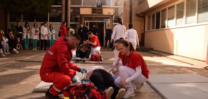 Na platou ispred Medicinske škole održan je ugledni čas na temu „Praktičan pristup hitnim medicinskim stanjima“, koji je kroz realističan prikaz situacija istakao značaj pravovremene i stručne reakcije.
