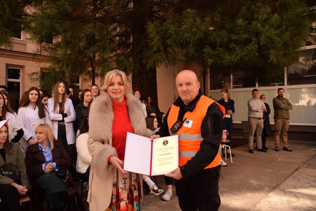 Profesori i direktorica škole uputili su zahvalnost svim učesnicima koji su doprinijeli realizaciji časa, a tom prilikom uručene su i zahvalnice za iskazanu stručnost i profesionalnost: dr Stefanu Ivanoviću (HMP), Milosavu „Mikiju“ Koraću, komandiru vatrogasne službe i Radu Vujoviću, policijskom službeniku.
