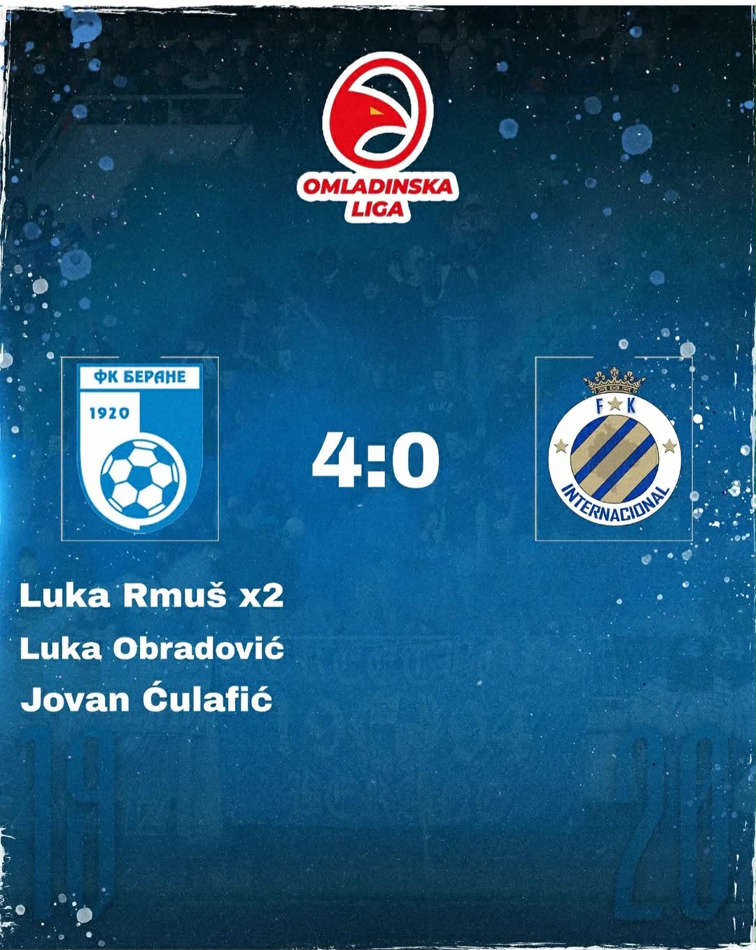 U 22. kolu Druge omladinske lige Crne Gore, omladinci Berana juče su na svom terenu ubjedljivo savladali ekipu Internacionala rezultatom 4:0 i još jednom pokazali kvalitet, borbenost i timski duh koji ih krase.