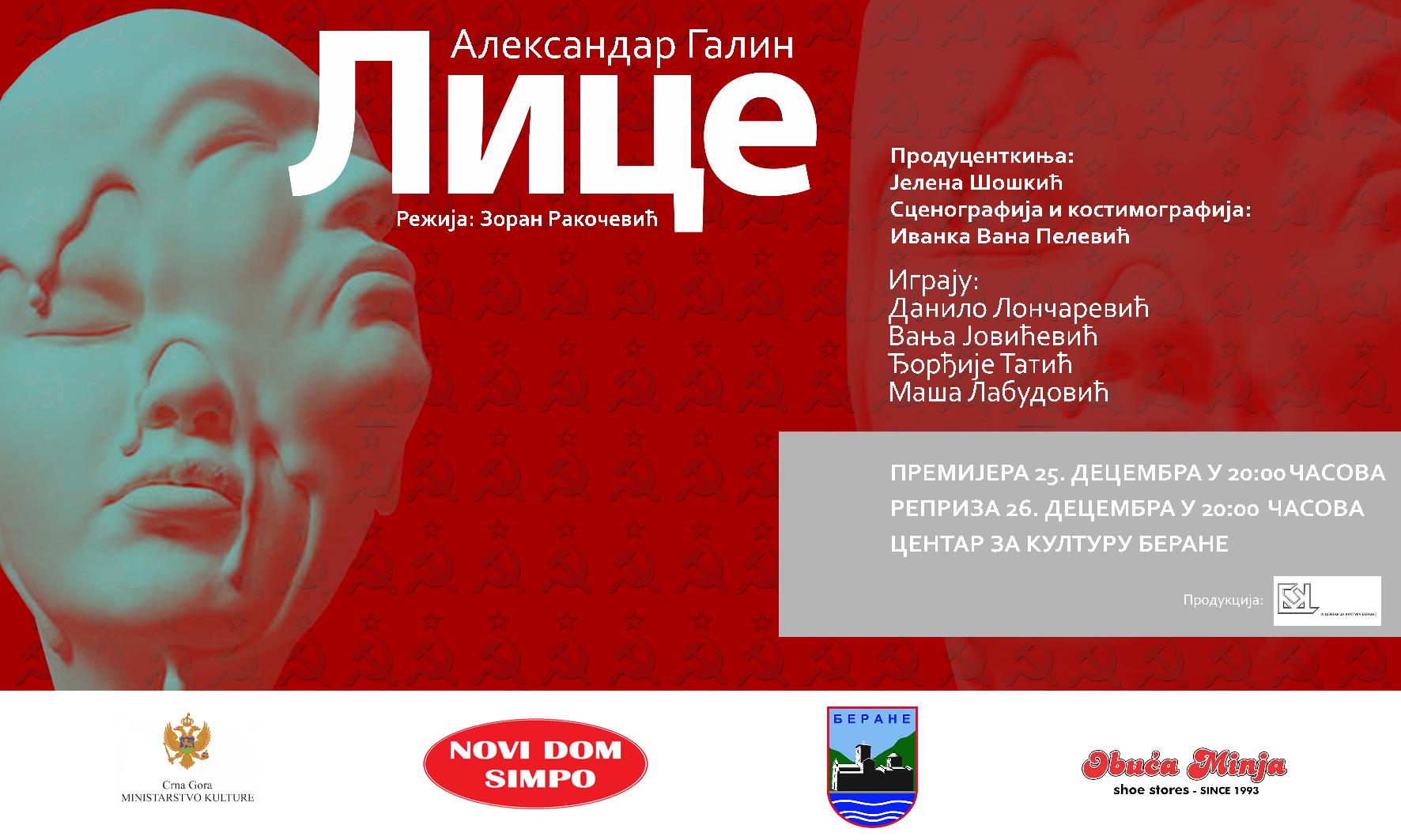 Predstava „Lice“, rađena po tekstu Aleksandra Galina, a u režiji Zorana Rakočevića biće premijerno izvedena sjutra u 20h u Centru za kulturu Berane.