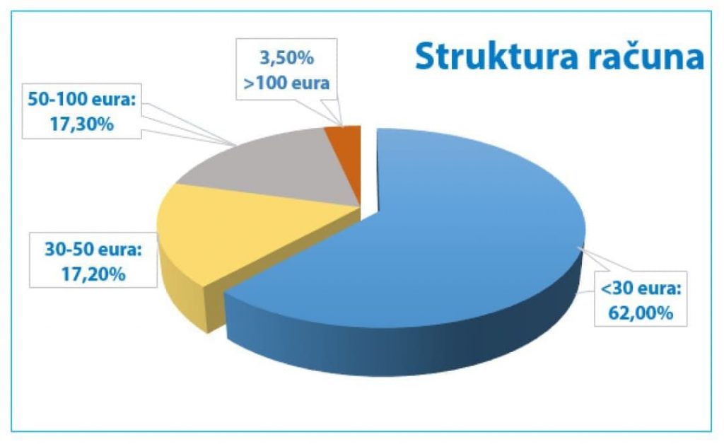 Iz te kompanije su saopštili da će 62 odsto domaćinstava dobiti račun u vrijednosti do 30 eura, a od 30 do 50 eura 17,2 odsto potrošača, od 50 do 100 eura 17,3 odsto kupaca, dok je potrošnja preko 100 eura očitana kod 3,5 odsto kupaca. Iz EPCG dodaju da će aprilske račune umanjene za iznos popusta za redovne platiše dobiti 50,4 odsto domaćinstava u Crnoj Gori, odnosno 181.577 kupaca.