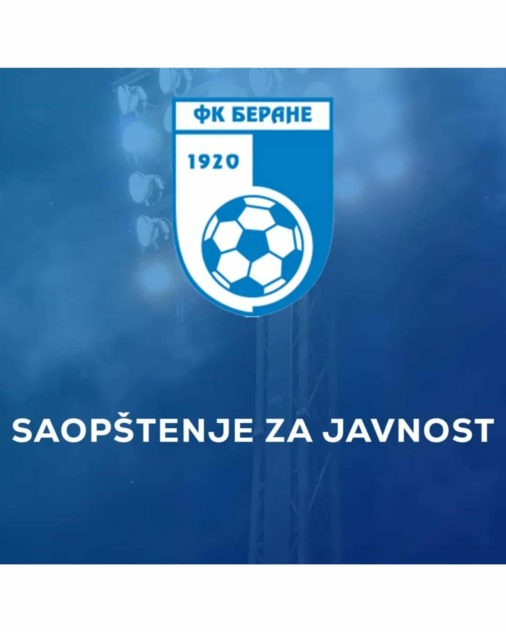 Povodom događaja na utakmici Omladinske lige Crne Gore, koja je odigrana 23.11.2025. godine, u Podgorici, između FK “Stari Aerodrom” i FK “Berane”, saopštenjem za javnost se obratio beranski klub.
