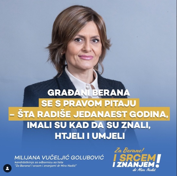 Vučeljić Golubović: Građani Berana se s pravom pitaju – šta radiše jedanaest godina, imali su kad da su znali, htjeli i umjeli