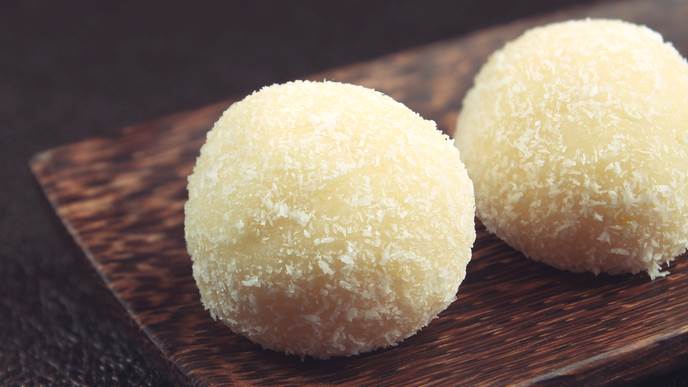 Na kraju obložite bijelom masom, rukama formirajte kuglice i uvaljajte ih u preostali kokos. Ostavite jedan sat u frižideru.