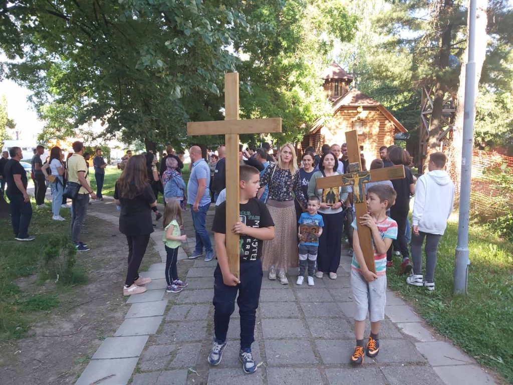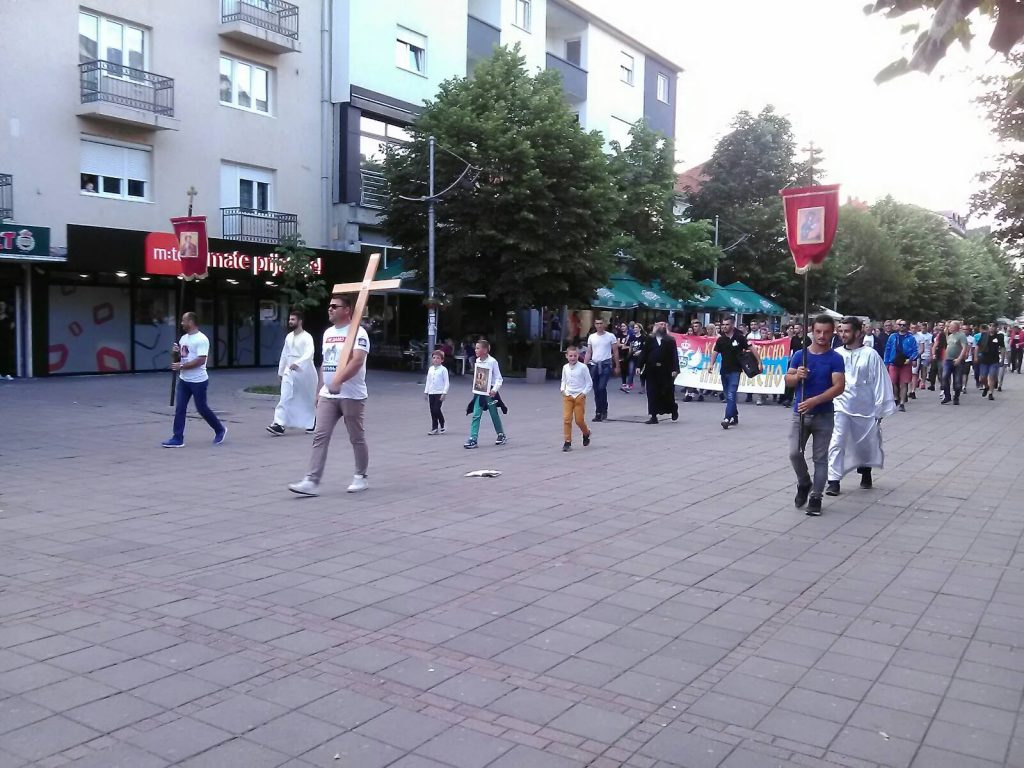 Za to vrijeme treća grupa građana na čelu sa sveštenicima prošetala je glavnom gradskom ulicom, uzvikujući ,,ne damo svetinje”.