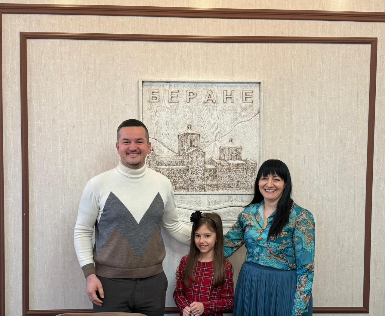 Za osmogodišnju violinistkinju Kseniju Vukićević iz Berana upriličen je prijem sa predsjednikom opštine Đolem Lutovcem povodom velikog uspjeha na međunarodnom takmičenju Mini Paganini u Beogradu, koje se održava u dvorani Kolarčeva zadužbina.