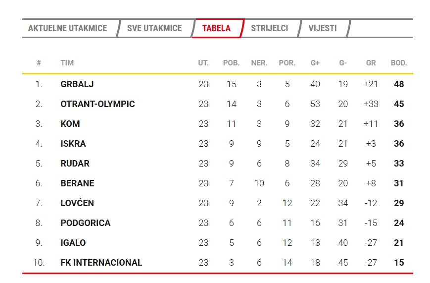 Vodeći Grbalj je u drugom dijelu igre u Radanovićima slomio otpor Podgorice – 3:1 (0:0). Za domaće je dvostruki strijelac bio Čađenović, a jedan gol dao je Sesaj. Počasni pogodak za Podgoricu postigao je Gazivoda.