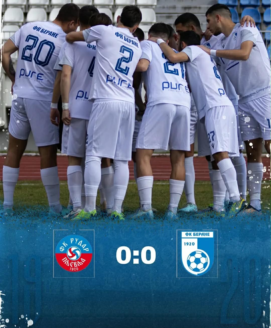 U derbiju sjevera, u okviru 23. kola Meridianbet Druge CFL, fudbaleri Rudara i Berana remizirali su u Pljevljima rezultatom 0:0.